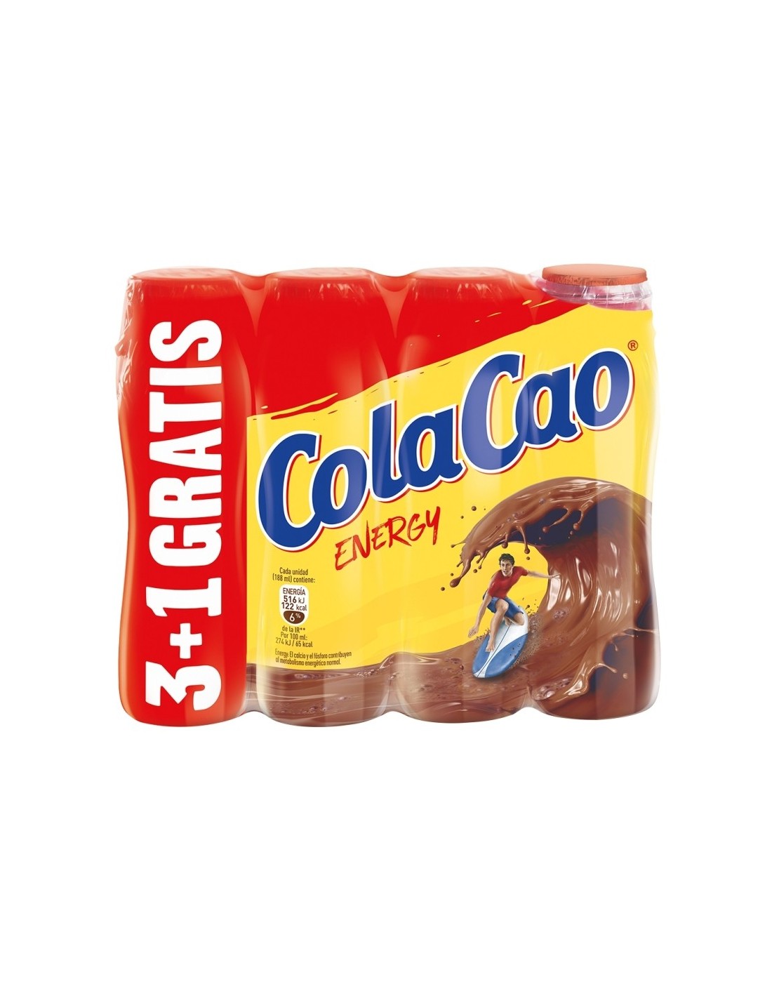 El pack de BATIDO COLA CAO ENERGY 3+1 (188ml) es el formato promocional ideal para el consumo fuera de casa. A diferencia de otros batidos, este mantiene el sabor icónico del Cola Cao de siempre pero con una textura totalmente disuelta (sin los clásicos grumos), gracias a su proceso de elaboración.